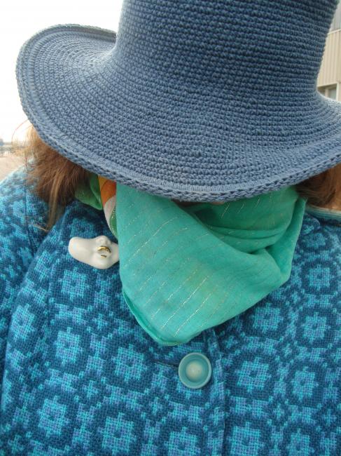 Titta! En Cowboy! om min förklädnad. Och det är nog bara jag som väljer att klä mig i färgstarkt blått, från strumpbyxor och hela vägen upp till hatten, med avsikten att vara osynlig.