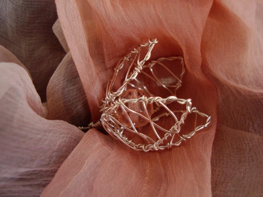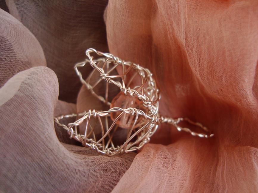 Ibland gör jag smycken som liksom slår an en särskild ton i mig. Som den här blomberlocken. Den är så skir och ljus och ser både spröd och stark ut. Jag vill rulla runt den mellan fingrarna, känna på den, titta på den ur olika vinklar. Jag vill fota den i softat ljus med tunna, tyger fladdrande omkring den.