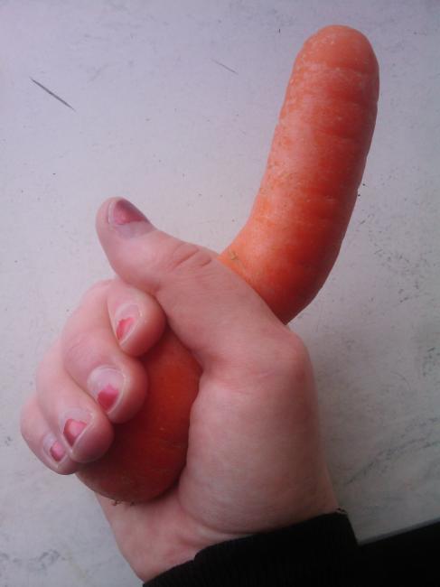 Vad ska man med en ergonomisk morot till? Den ser lite snuskig ut. Kanske därför David hackar sönder den nu.