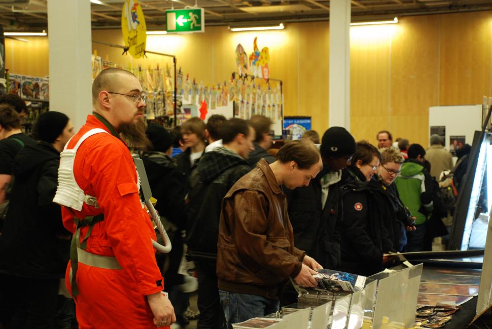 Men de kommer, var så säker. När vi lämnar mässan slingrar sig kön fortfarande lång utanför. Många nördar i stan idag.