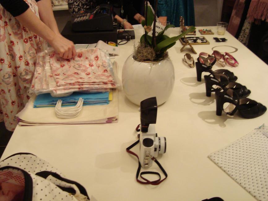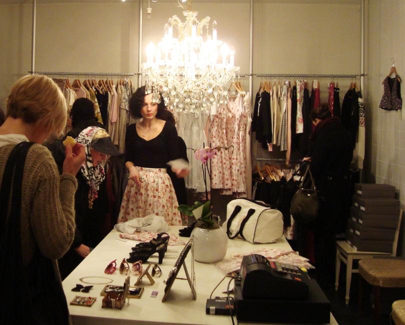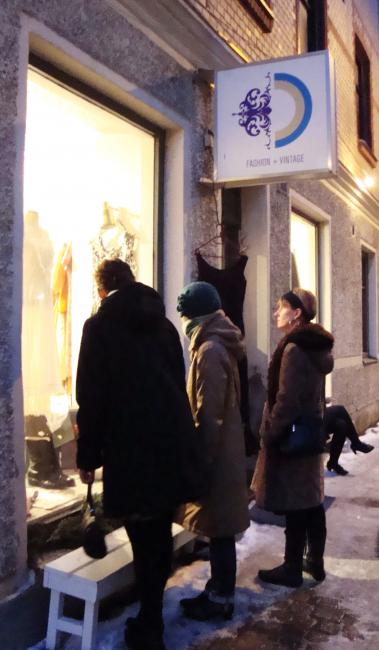 Drömmas garderob. Det var givetvis feststämning med folk som hängde på låset kl 18 när man genom fönstret kunde skymta mopp och hink få göra det sista på butiksgolvet innan dörrarna kunde öppnas och släppa in en massa (köp)glada människor med snöslask under fötterna.
