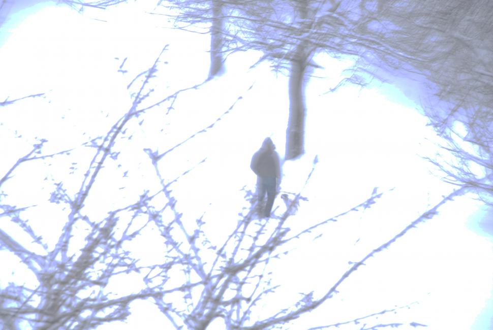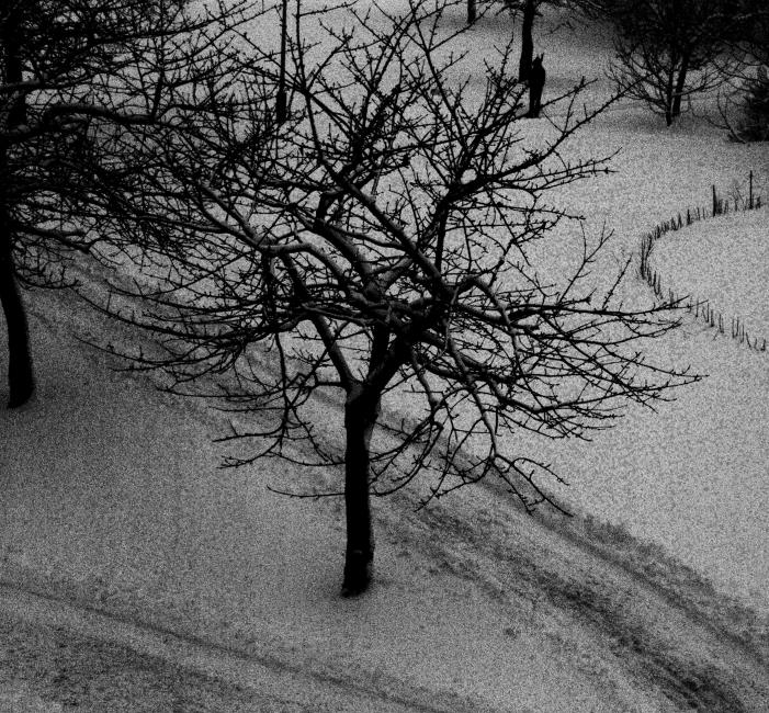 När David går till affären står jag i fönstret och fotar snö, träd och granne med hund. Snön är rolig att leka med. Kameran och ljuset och exponering och fotoredigering. Things to do when you're under the weather. Having a cold. Snorig och äcklig. Snö.