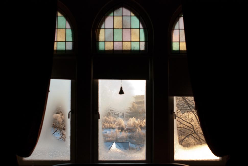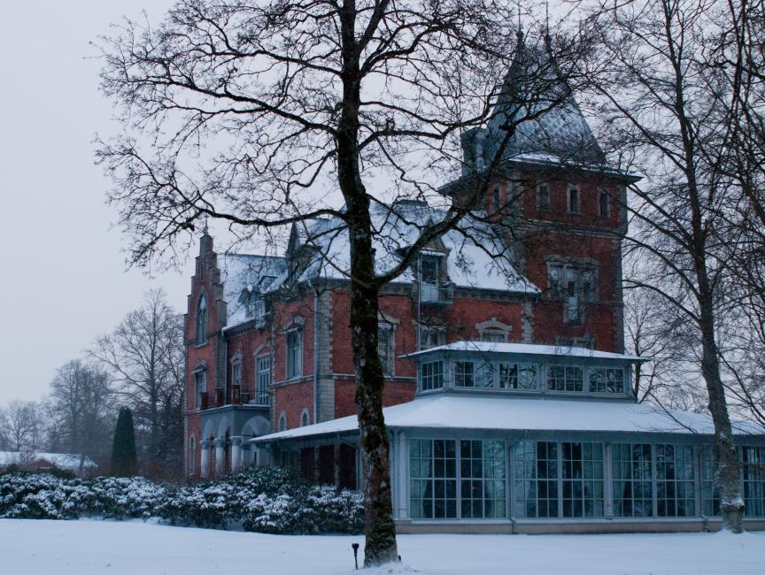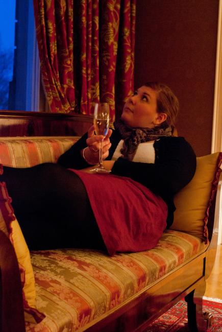 Vi bodde i världens tjusigaste rum, åt vanvettigt god mat, lyssnade på fulla norrmän, drack kaffe i salongen, sov gott i slottssäng, vaknade tidigt med rimfrostade fönsterrutor och en underbar dag, åt sinnessjukt god frukost i Blomstersalongen och gick en sväng i slottsparken.