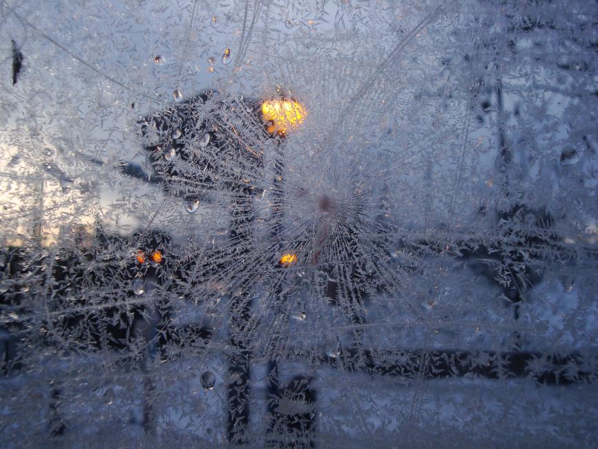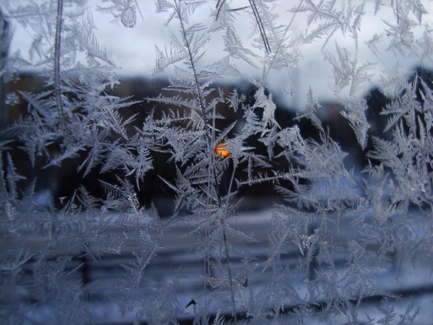 Ett glashus täckt av iskristaller.