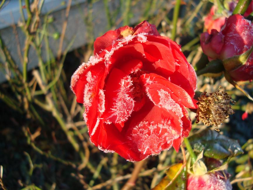 Ibland hänger blommorna inte med i årstiderna. I år kom vintern med första december och frostbehandlade alla växter.