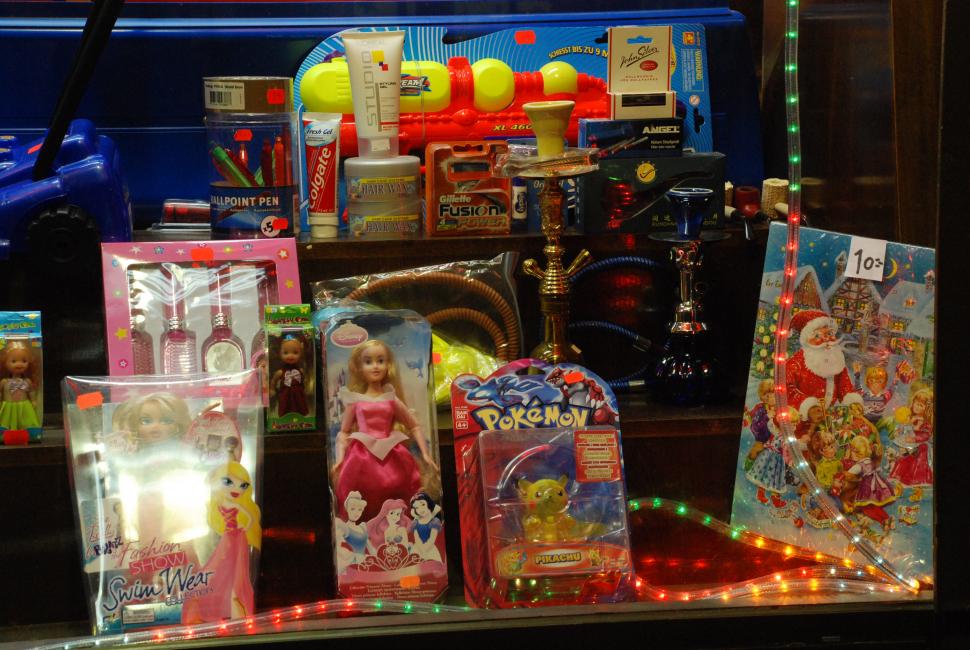 Från Vattenpipor till Pokémon. Det är ett långt spann det. Allt i ett endaste skyltfönster. Vad mer kan man begära?