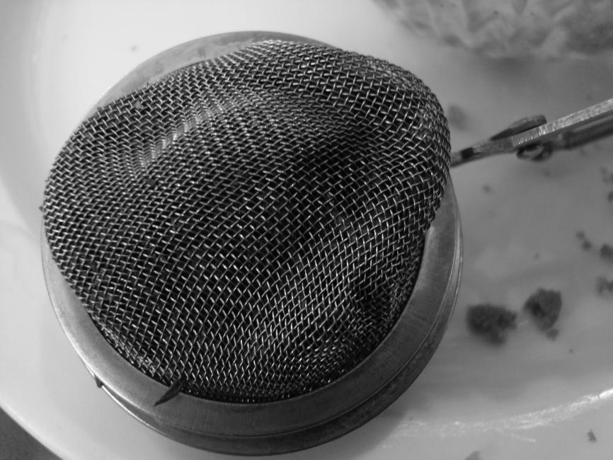 En tesil från idag doppad i hett vatten i en kopp i en stationsbyggnad i en stad innan tåget kom och tog mig därifrån.