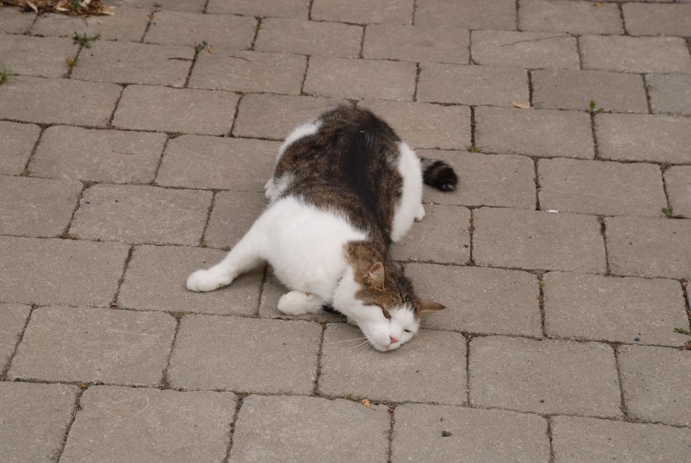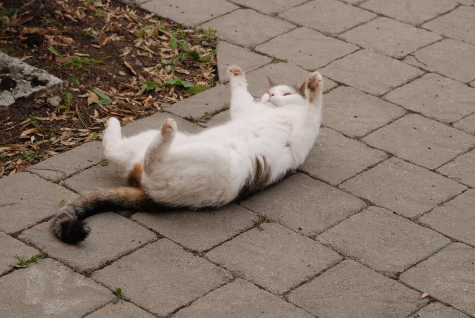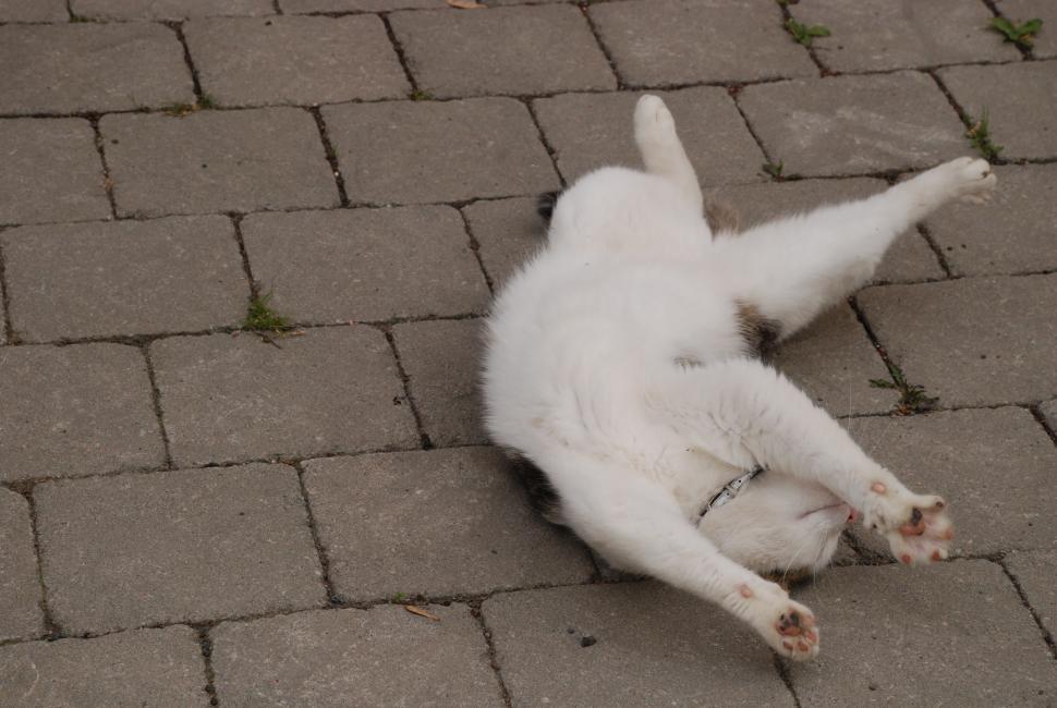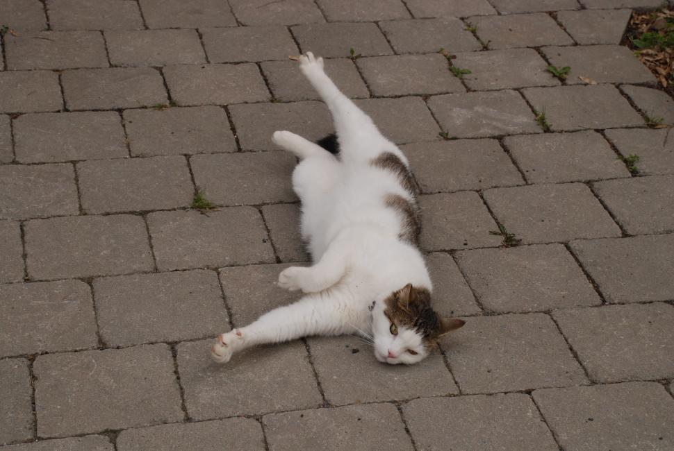 Att bli mött på uppfarten av en rullande och poserande kissekatt är ett av de bättre sätten att bli välkomnad hem på.