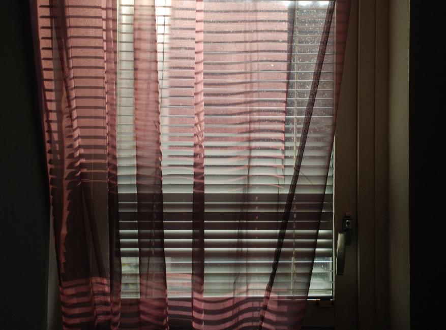 Det beror på var man lägger fokus när man sitter på toaletten och sömnigt stirrar framför sig. På fönstret med det trasiga insynskyddet som glittrar i solen. Eller längre bort, ut, på fabriksskorsten och blå himmel.