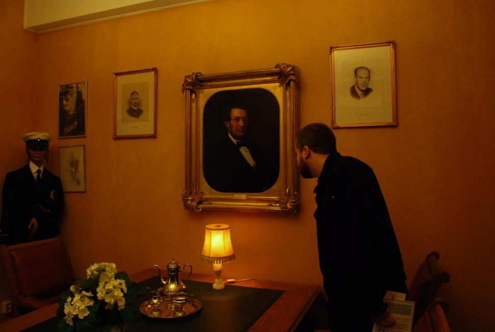Öppet hus i kaffestugan. Marschaller och ett varmt ljus från fönstren.