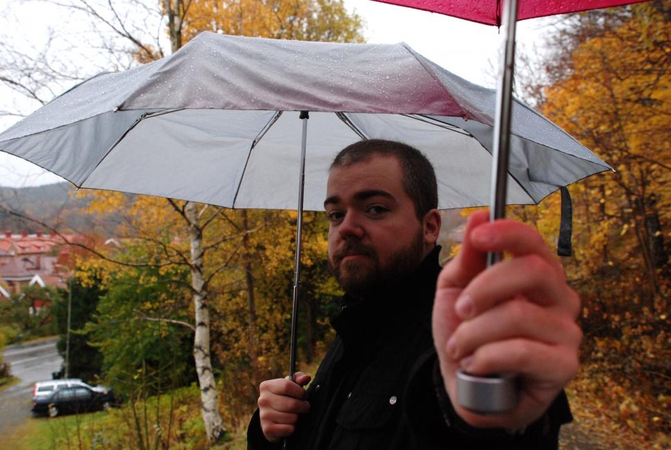 Ja, han är hjälpsam och fin, min David. Håller paraplyet över mig när jag fotograferar varje hus jag vill bo i, träd som gör mig lycklig och lövbeströdd mark under mina fötter.