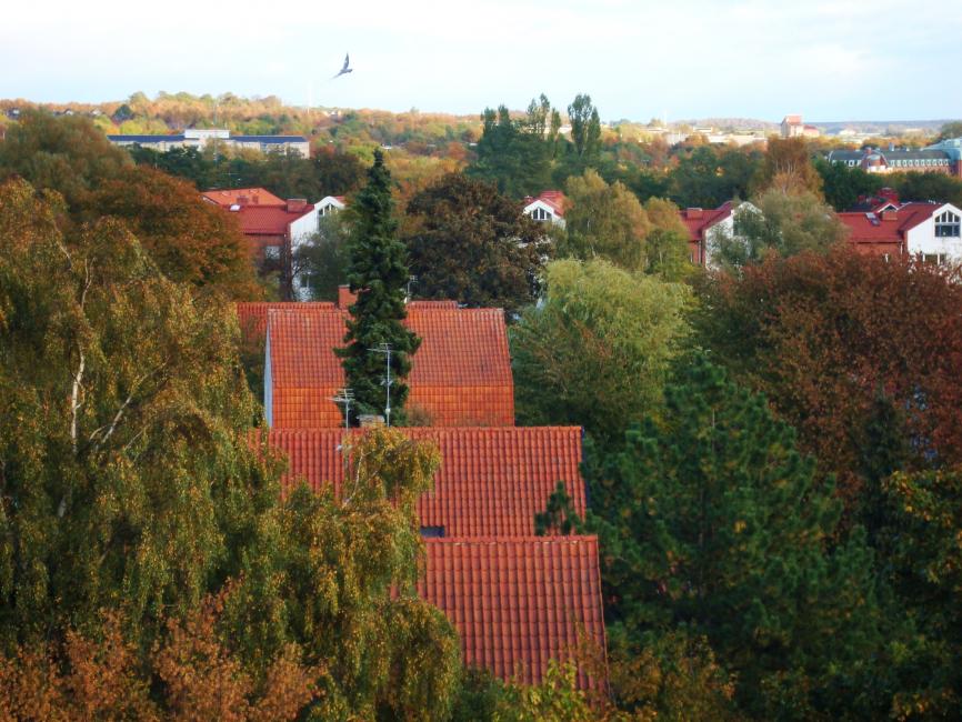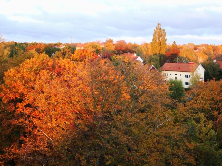 Med den här utsikten hade jag aldrig lämnat mitt hem. Om jag bott där. Kilometer efter kilometer av soldränkta höstkulörta trädkronor.