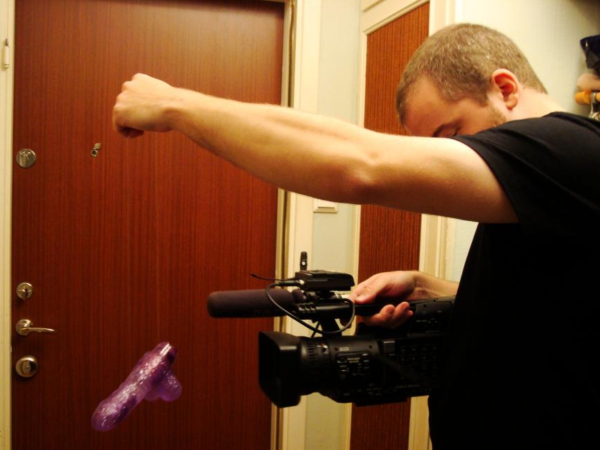 Det är inte var dag man får hänga en lilaglittrig dildo i en fiskelina och snurra runt med den framför en kamera.