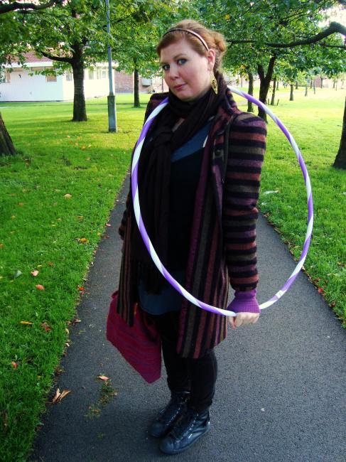 Frågade i kassan (och erkände därmed att den var till mig). En titt på lagret och sen fick jag mig en lila polkagrismönstrad rockring i perfekt storlek som varken blinkar, rasslar eller plaskar.