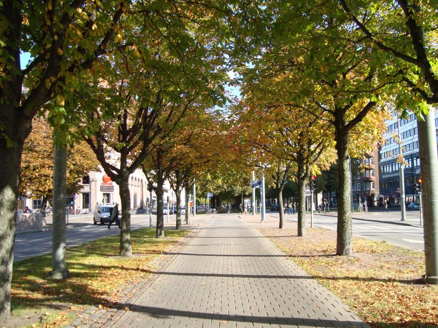 Längs med spårvagnens räls och med motorvägen på andra sidan. Någons försök att förstöra förorten lite till.