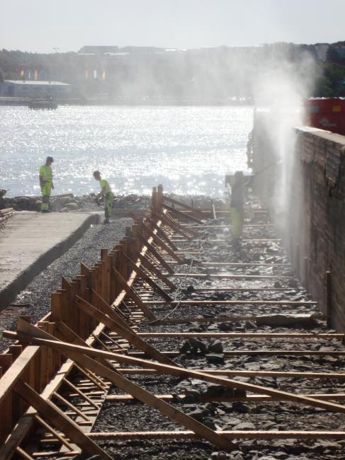 Fick stanna och plocka upp kameran när jag såg klotterbekämparna i arbete. För inte visste jag att det såg så snyggt ut. Som rök, fast vatten.