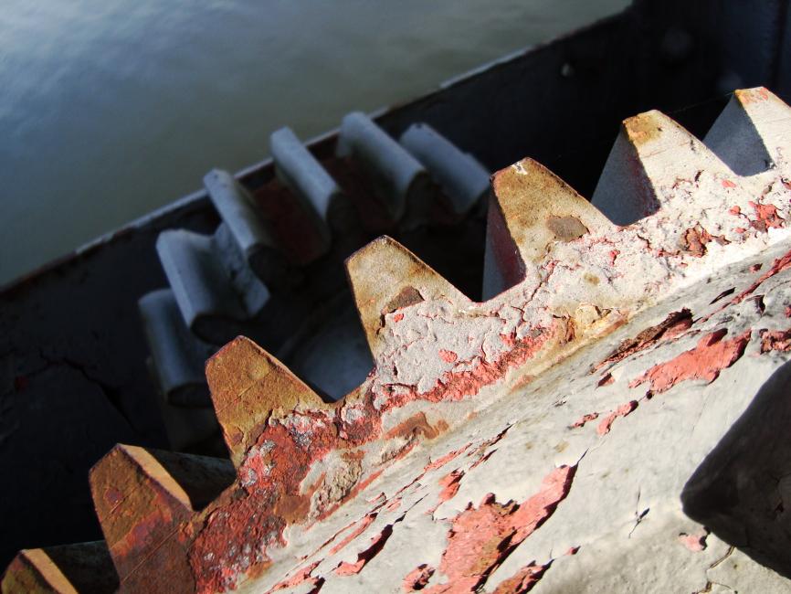 Bredvid vagnen. En lyftkran. Gammal den också. Rostig likaså.