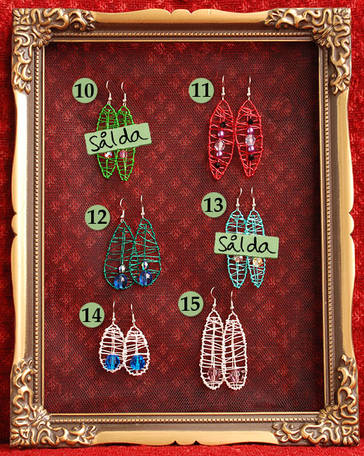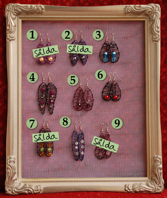 Örhängena på bilderna ovan säljs nu för ynka 100 kronor per par (ordinarie pris 189 kr). Det är alltså först till kvarn som gäller! Om ni ser nåt ni vill ha maila mig på lottalosten@gmail.com eller skriv till mig här på sidan (antingen i kommentarsfältet eller i gästboken) så kan örhängena pryda dina örsnibbar inom en vecka.