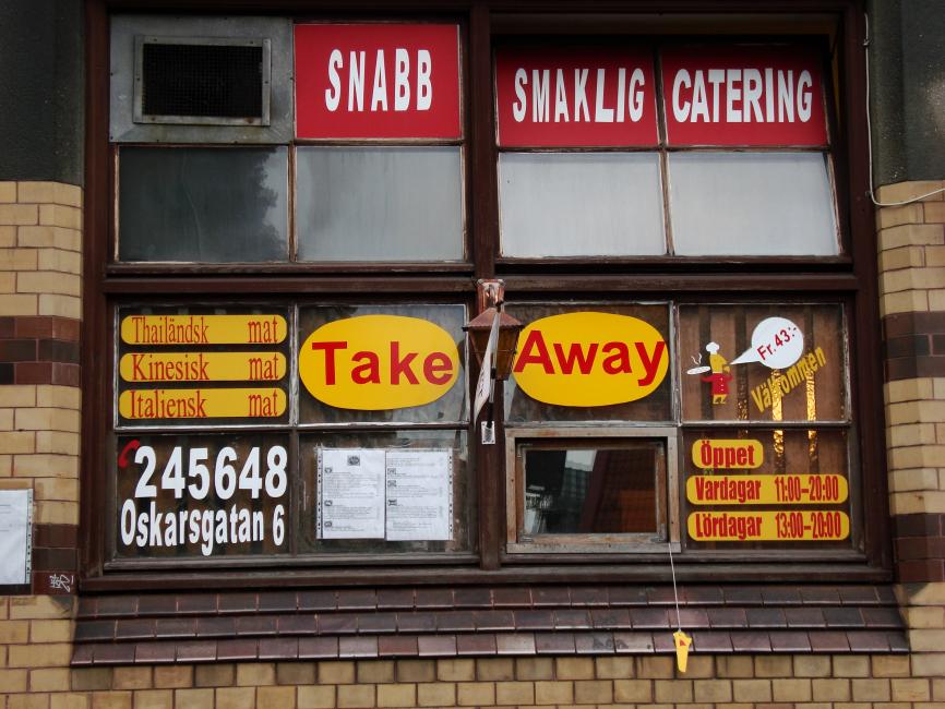 Vi åkte dit. Från Hisingen, genom stan. Många barnvagnar på spårvagnen; alla ska av vid Liseberg. Sju minuters promenad från hållplats till restaurang. Och så en skylt på dörren.