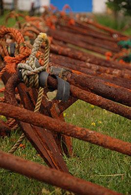 När jag tycker fiskarens bojar, rep och redskap av alla de slag är vackra där de ligger utspridda på grässlänten. När jag kliver runt i min fina svarta klänning, som är lite för lång så jag måste lyfta lite i tyget på ena sidan för att inte snubbla, och fotograferar bruksföremål som för byns fiskare endast är sådant som behövs för att kunna fiska, uppradat på ett sätt som gör det enkelt att återuppta arbetet.