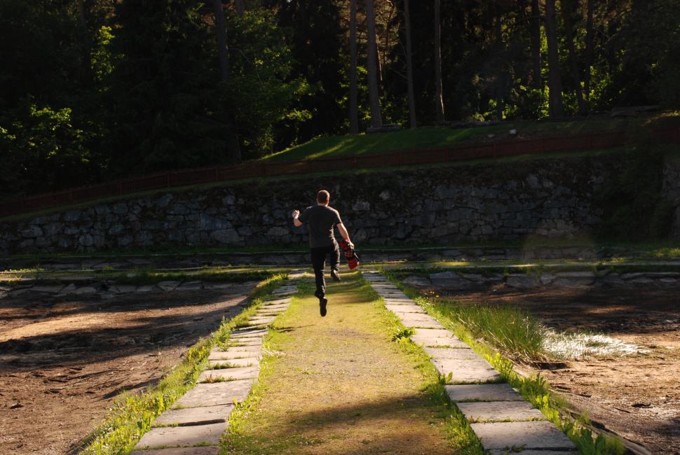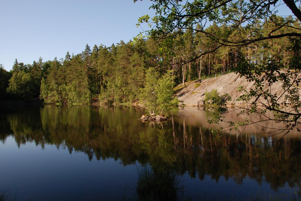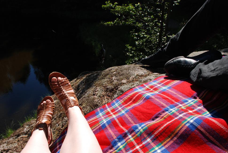 Tog med oss sushin till Vattenledningsdammarna. Hittade en klippa i gassande solsken högt över vattnet. Vi satt där och åt och spanade på gammelgäddan som sakta, sakta gled fram under vattenytan. Kanhända var det ingen gädda, men den var stor och den såg hemskt gammal ut.