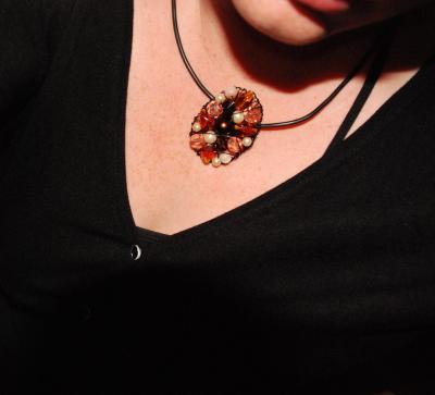 Ikväll ville jag göra ett smycke till mig själv. Något att ha till den fina klänningen jag köpte häromdagen. Det blev ett halssmycke som kan extraknäcka som brosch om man vill det. Jag uppskattar saker som man kan använda på olika vis. Det är alltid trevligt att få känna sig lite kreativ och uppfinningsrik i vardagen.