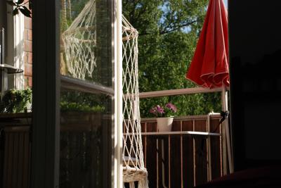 I helgen satt vi mycket på Systerns balkong. En balkong med guldläge. En balkong för såväl söndagsfrukost som afternoon tea. Så självklart leder husesynen även dit ut.