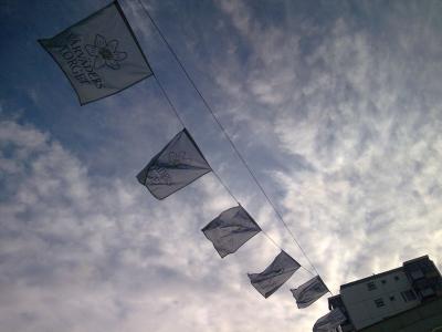 Vimplarna på Vårväderstorget vajade stolt i kvällsbrisen.