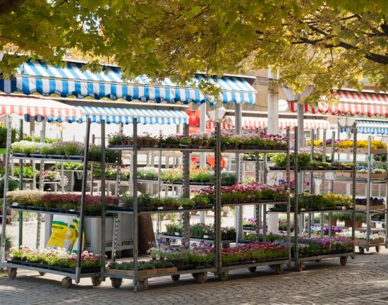 Igår var en skön dag som började med lite jobb vid datorn fortsatte sedan med en tur på Olskrokstorget för att handla ost och frukt. När David köpte läsk passade jag på att beundra blommorna. Det känns som att jag har missat hur våren kom eftersom det varit så mycket jobb med hemsidan. Svårt att begripa att det är löv på träden nu liksom.