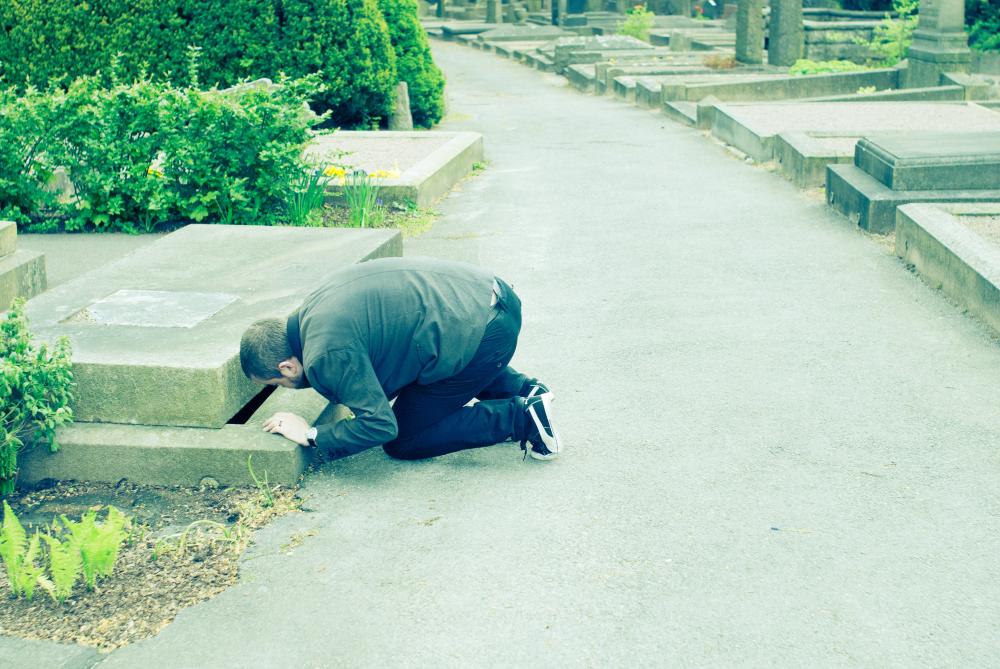 On our way back we found a grave that was a bit open. David dared to peek inside. There was nothing in it.