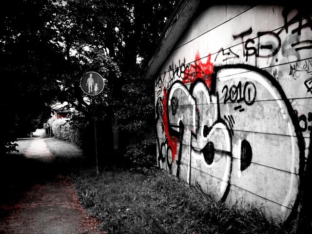 Promenerar genom villaidyll på väg till jobbet och passerar den här graffitimålade husväggen som liksom sticker ut. Annorlunda.