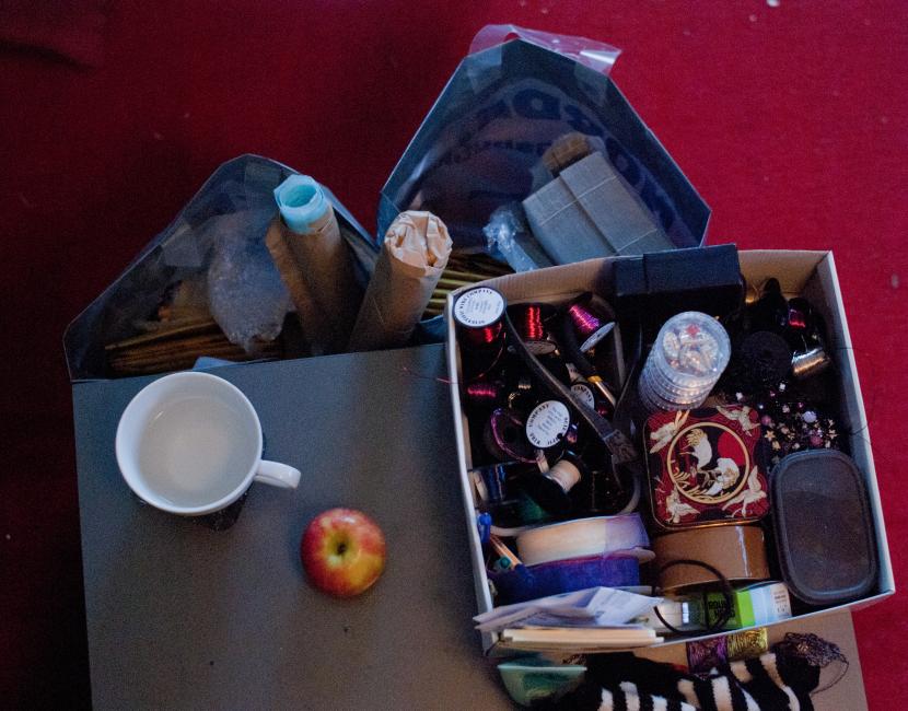Kontoret har sedan dess utökats till två plastkassar och en större skokartong.