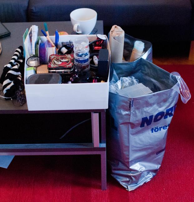 Den ligger i mitt kontor och pekade på plastkassen som står bredvid soffbordet där jag brukar sitta och jobba. Skämtet har upprepats så många gånger att vi numera säger så helt allvarligt när vi talar om den platsen.