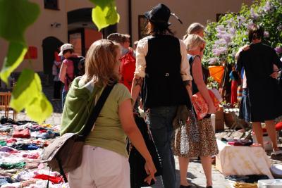 Just när vi beslutat oss för att cykla till Långholmen och gå på stand up-festival blev vi stannade av SkansenJonas som bjöd in till gårdsloppis. Ja, jo, men visst.