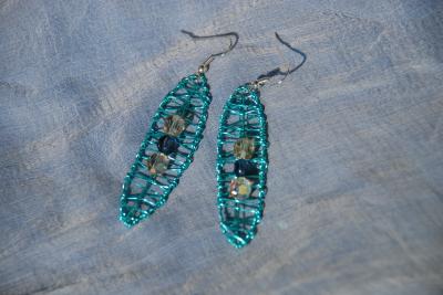Turkosblå örhängen med champagnefärgade och rökblå glaspärlor.