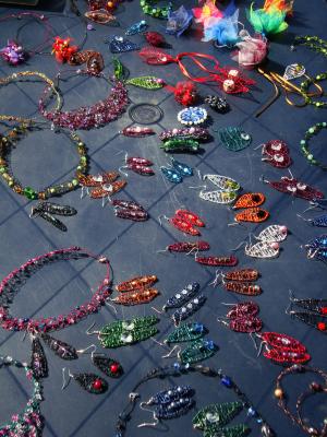 Pärlor, trådar, tänger, sidenband sprider ut sig på byrån, skrivbordet, golvet, under vardagsrumsbordet. Ja, ni fattar.