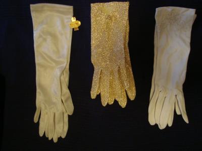 Gunsan jobbade i underklädesbutik och jag har berättat om henne en gång tidigare här. Kanhända var dessa handskar varuprover från butiken. Ett av paren har fortfarande lappen kvar. Sparkling nylon. Made in western Germany. 6 ½ .