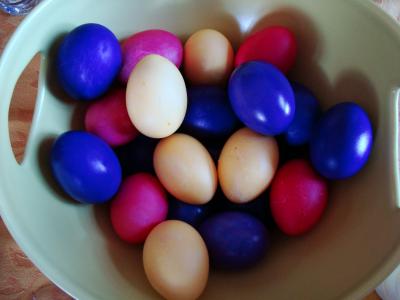 De lila äggen blev klart bäst. Färgstarka och vältäckta till skillnad från de klenare röda och gula, som dessutom fällde färg.