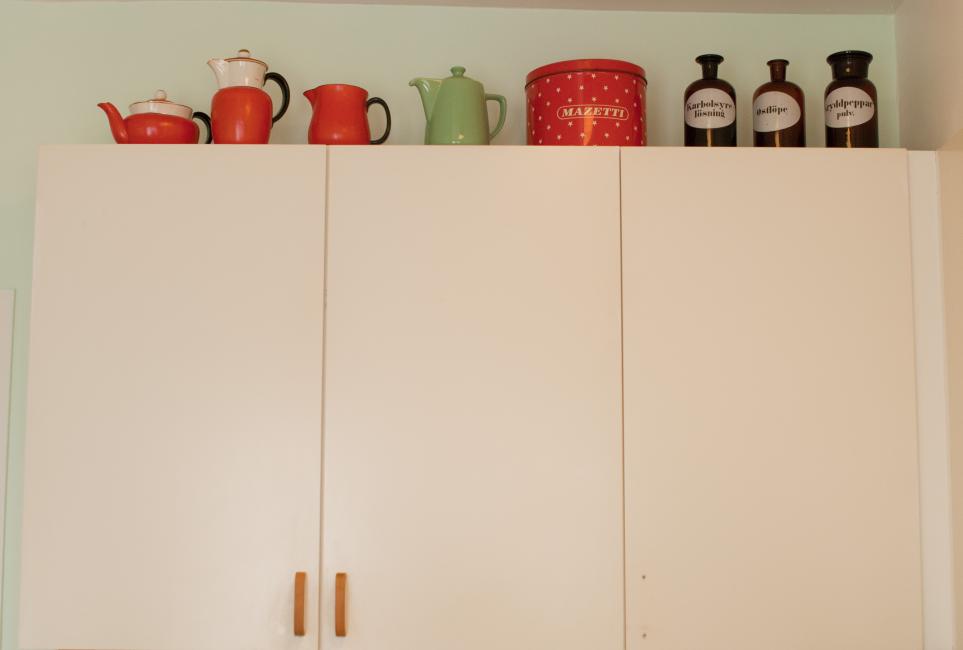 Den ska upp på vinden. Den ska in i arbetsrummet. Den till sovrummet. I köket hade jag fyra happy helpers som sjöng visor från äldre dar i takt med porslinsuppackandet.