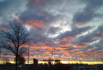 Jag står fast vid att 07:00 inte är en tid menad att uppleva i vaket tillstånd, men en sådan här himmel över Hjalmar Brantingsplatsen gör ju i alla fall upplevelsen lite mer acceptabel.