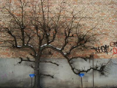Det finns människor som bara rör sig längs väggarna. Det finns träd som följer samma mönster.