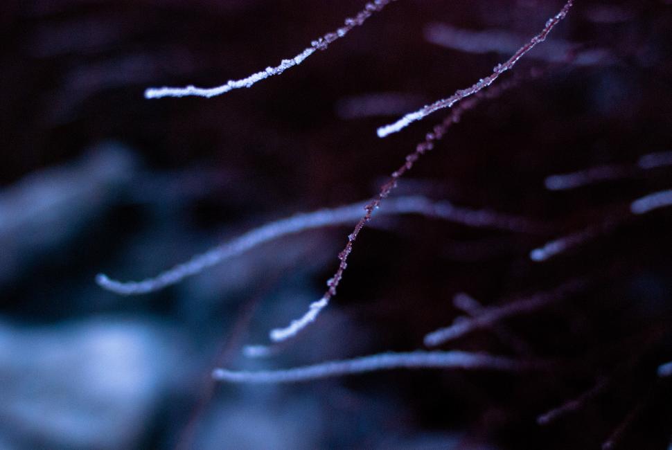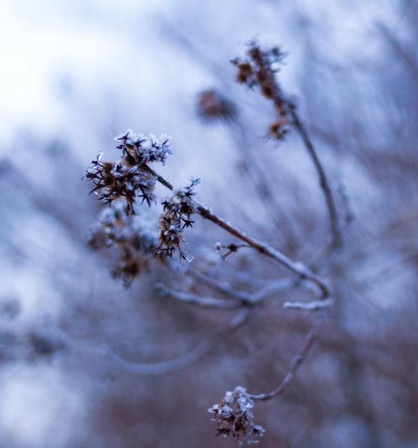 Det hade börjat skymma när vi klev utanför dörren. Hela Biskopsgården var täckt av en tunn frosthinna som fick grenar att se ut som tentakler och grässtrån som sakta vajande sjögräs.