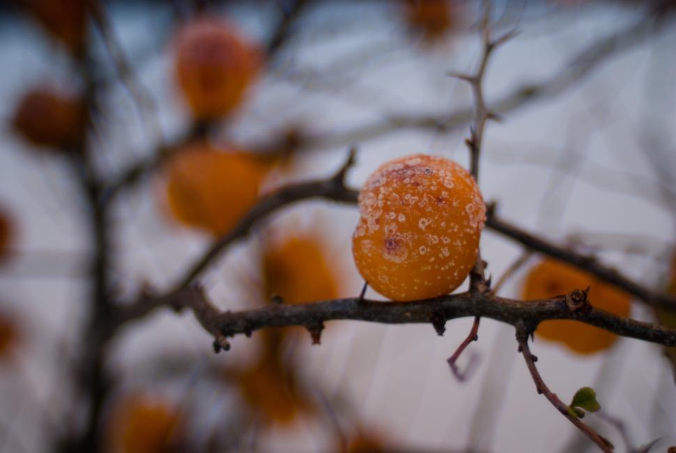 Jag tror det är kvittenbusken som ser så här vacker ut i vinterskrud. Jag pulsade i snö för att ta dessa bilder.