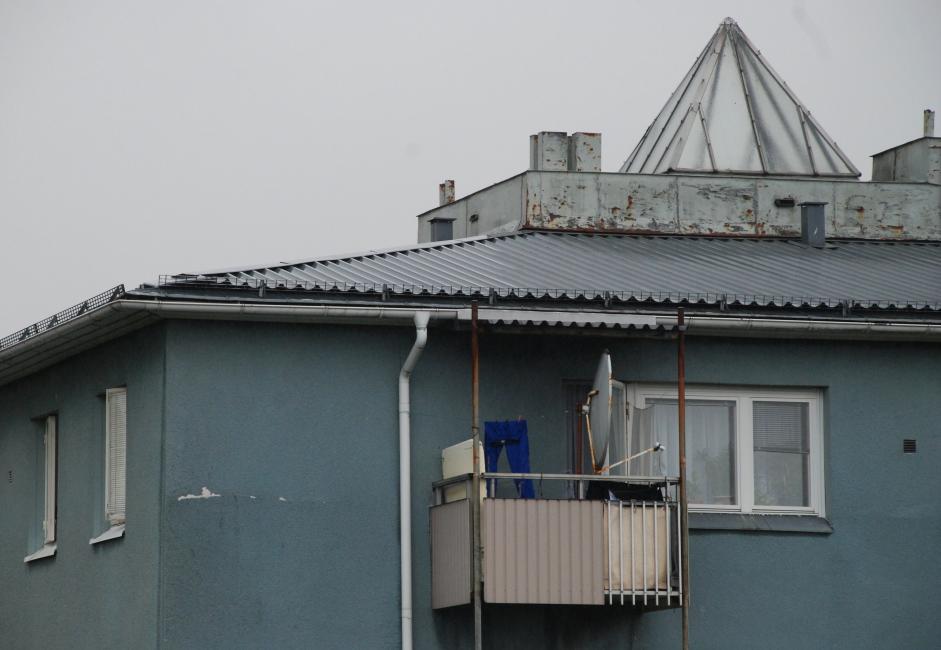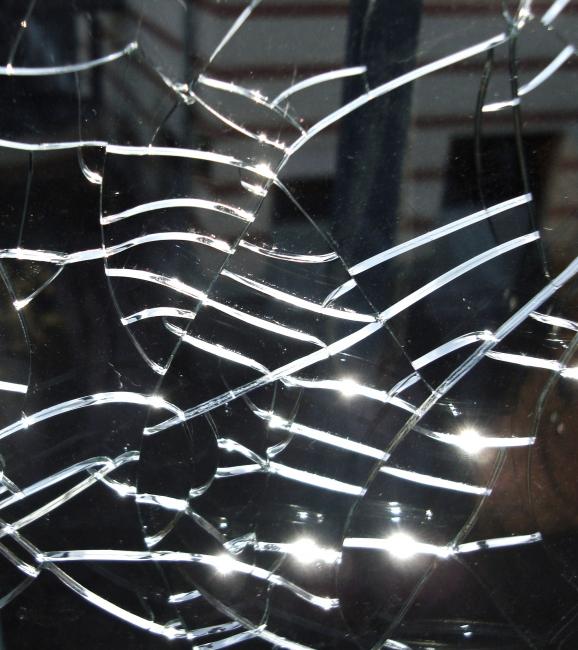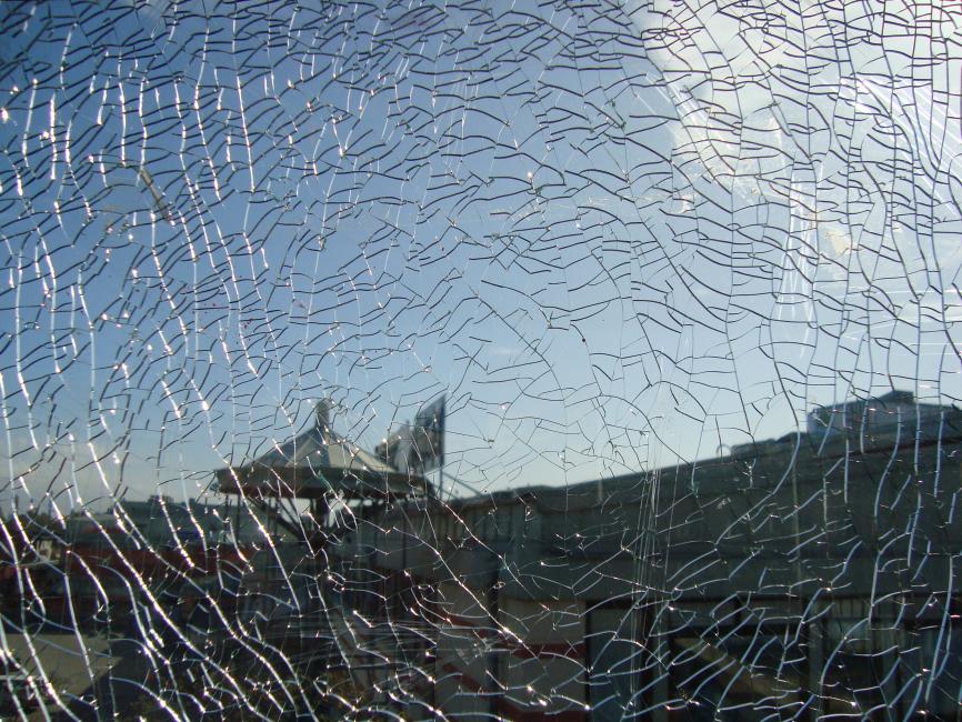 En sprucken utsikt igen. Jag gillar sådana. Spårvagnskurarna i stan förser mig allt som oftast med vackra sprickor. Som