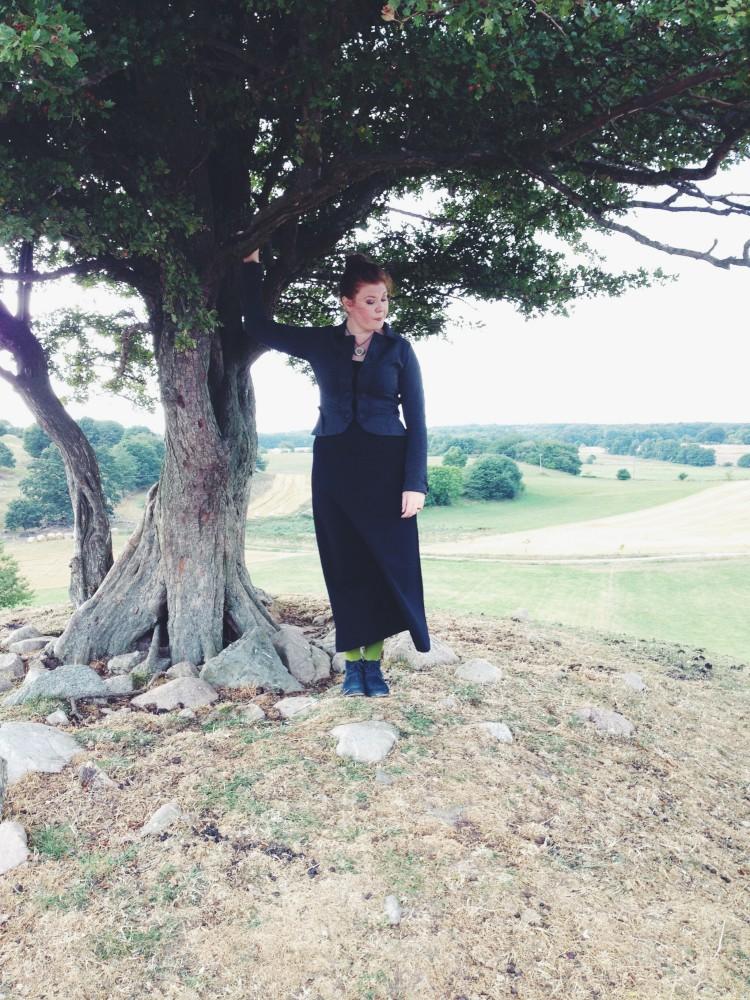 One under our tree wearing a vintage skirt, my wedding pocket watch and a jacket i bought really cheap at T.K Max in Glasgow and one balancing on wobbly stones wearing my latest thrift find, the over sized cardigan.