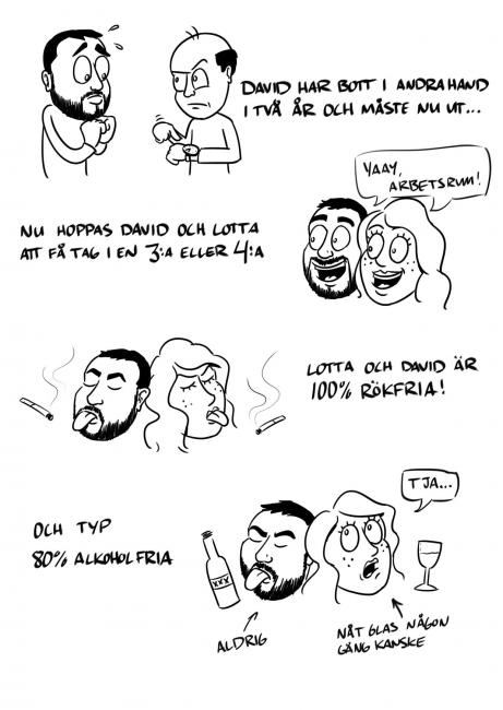Det här lilla seriehäftet ska vi skicka runt till diverse hyresvärdar i stan. Givetvis har vi med telefonnummer när vi skickar ut dem till hyresvärdar, men på stora stygga nätet får det vara. Ha ha!