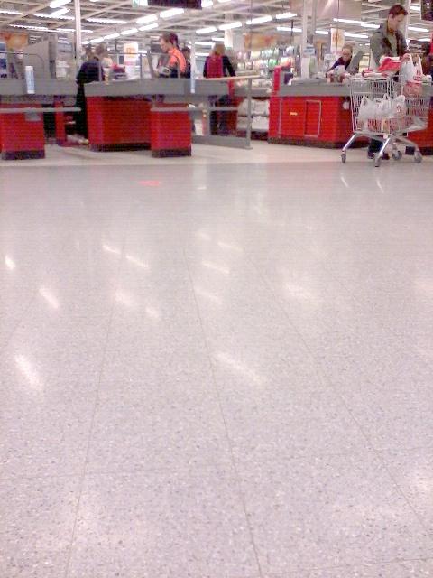 Tittade på folket som stod i rad efter rad och slängde upp sina varor på rullband. Studerade kassapersonalen som skötte sina jobb. Blipp blipp för var streckkod som susade förbi.
