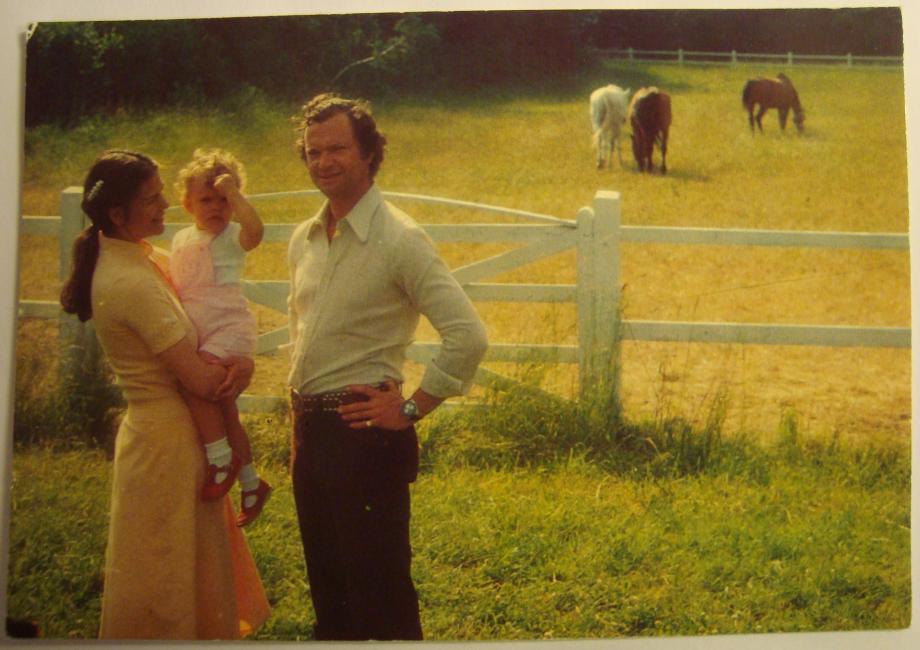 Pappa Kungen har rufsigt hår, uppknäppt skjorta och ingen vigselring på fingret. Silvia har en fantastiskt fin klänning som jag hemskt gärna skulle vilja ha. Och Vickan har en trulig min.