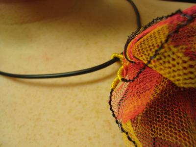 Halsbandet som tyllblomman hänger i på bilden; det är sladd.