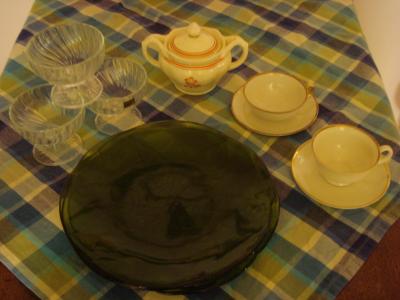 Plockade åt mig allt på bilden ovan och med priser som 5 kr för gamla Kosta-tallrikar, 2 kronor för Gustavsbergskoppar med guldkant och 2 kronor för glasskupor så kändes -nästan- sockerskålen från England, för 20 kronor, lite dyr.